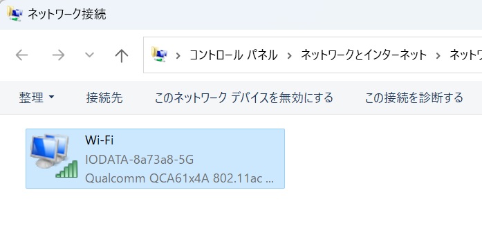 以下のような画面で、Wi-Fiを右クリックし、無効にしてしまっていたようです。