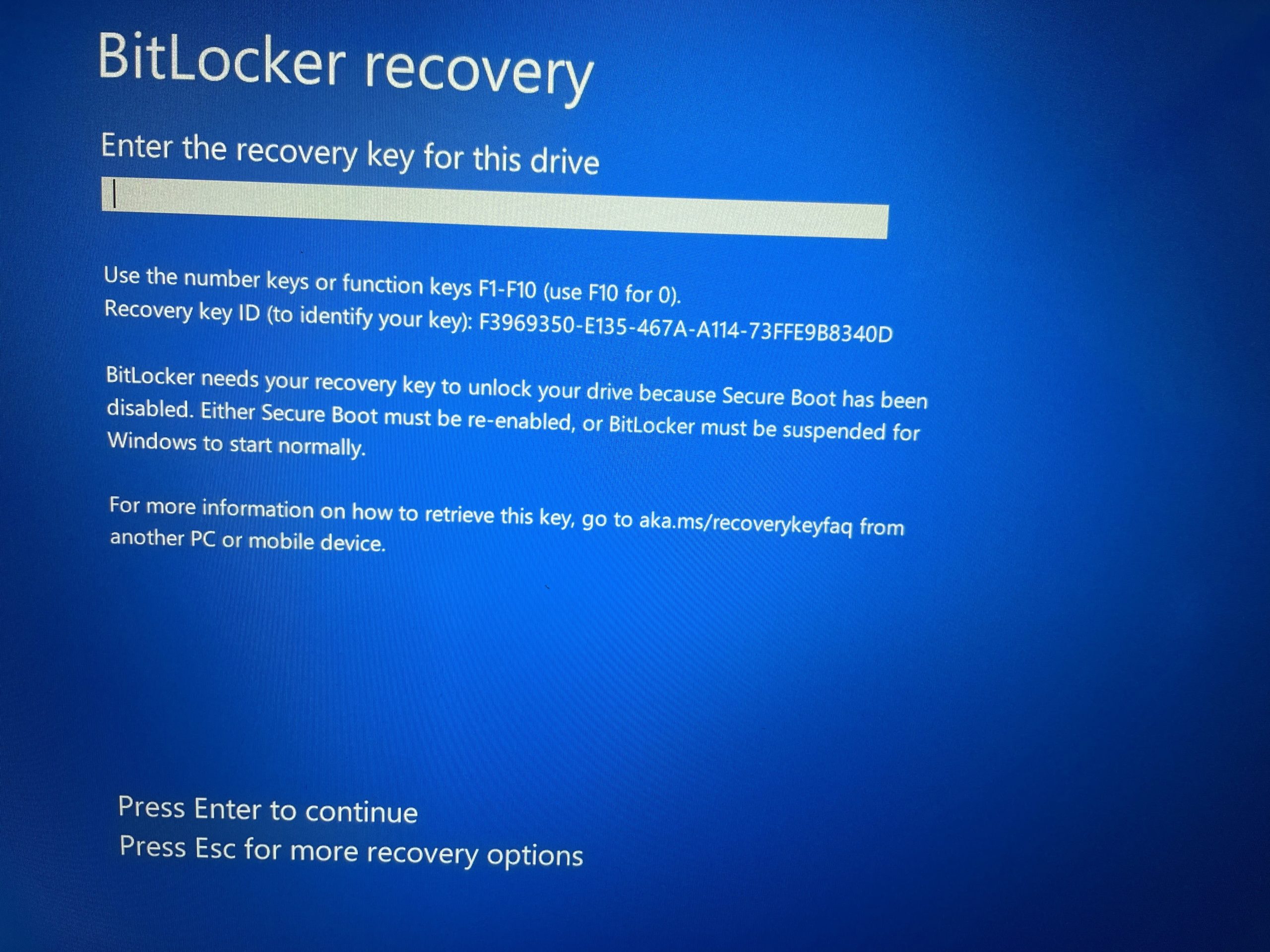 起動しない時の画面はこんな画面ですが、BitLockerなどは分からず、回復キーも無いということです。