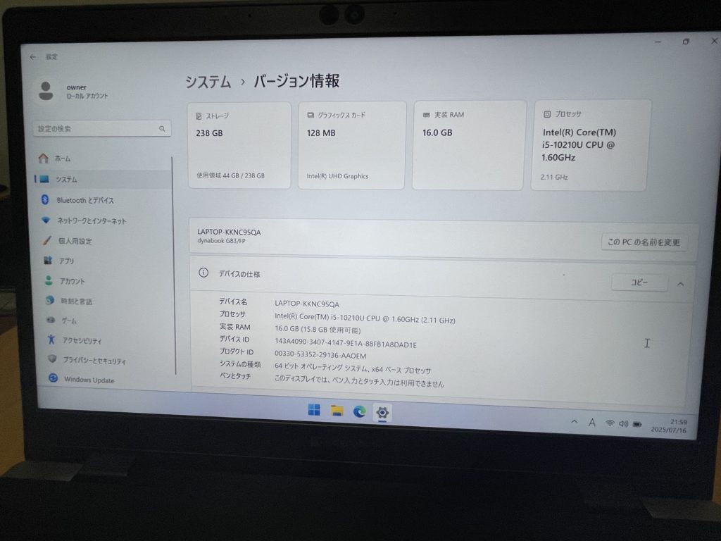 今回は東芝製Dynabookのノートパソコンを販売いたしました。