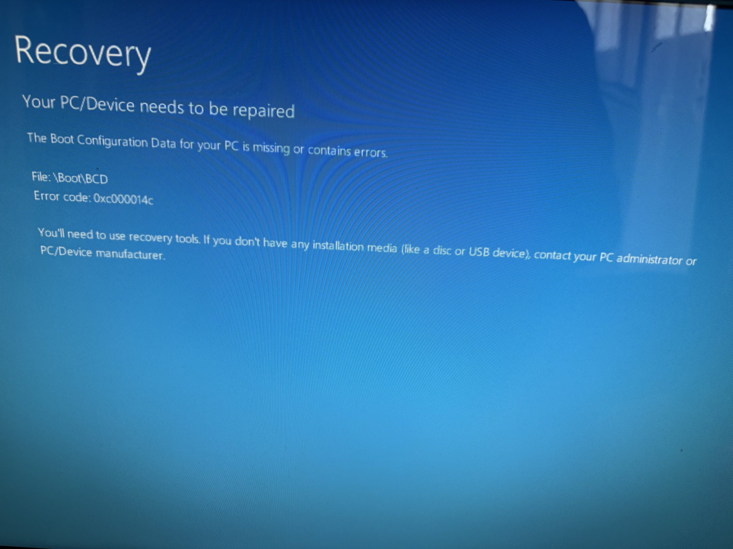 パソコンの電源を入れるのですが、画面が青色になりRecovery の表示でエラーコードが出ています。